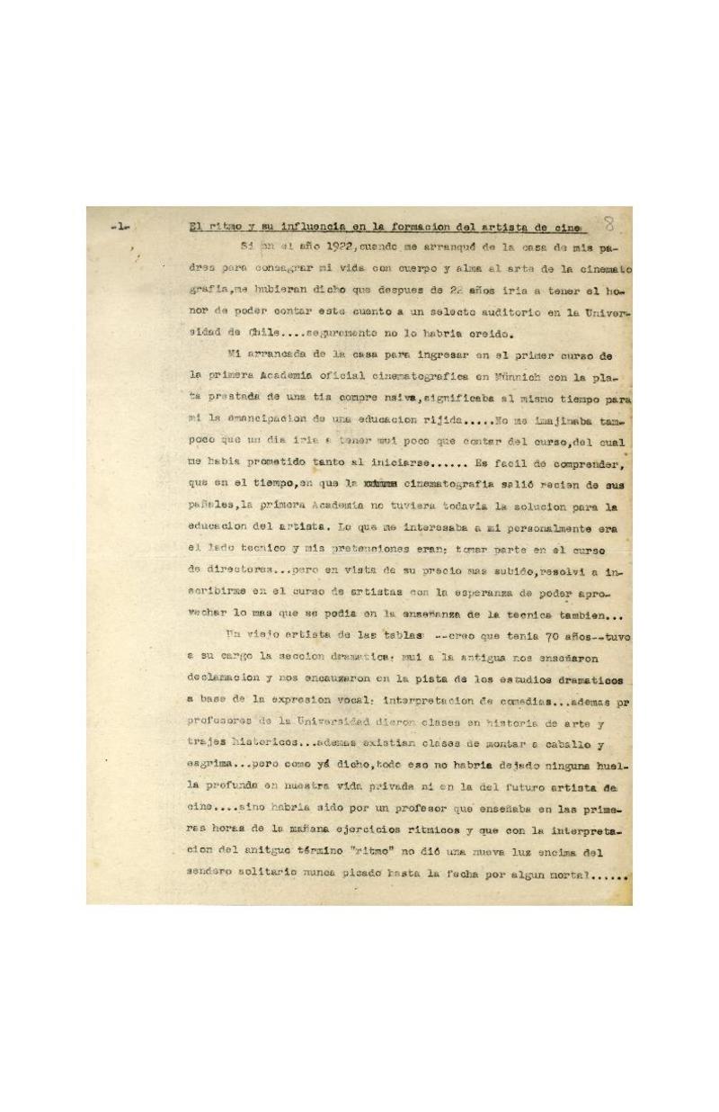 El ritmo y su influencia en la formación del artista de cine [manuscrito] Hans Jahr.