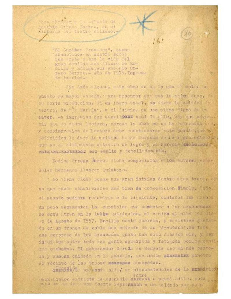 Manuscritos chilenos - Crítica teatral - Capitán trovador - Orrego Barros, Antonio