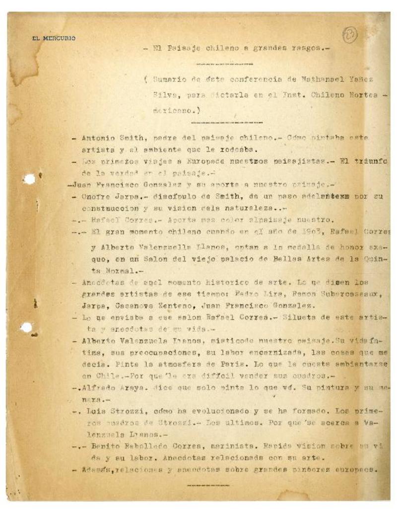 El paisaje chileno a grandes rasgos [manuscrito] Nathanael Yáñez Silva.