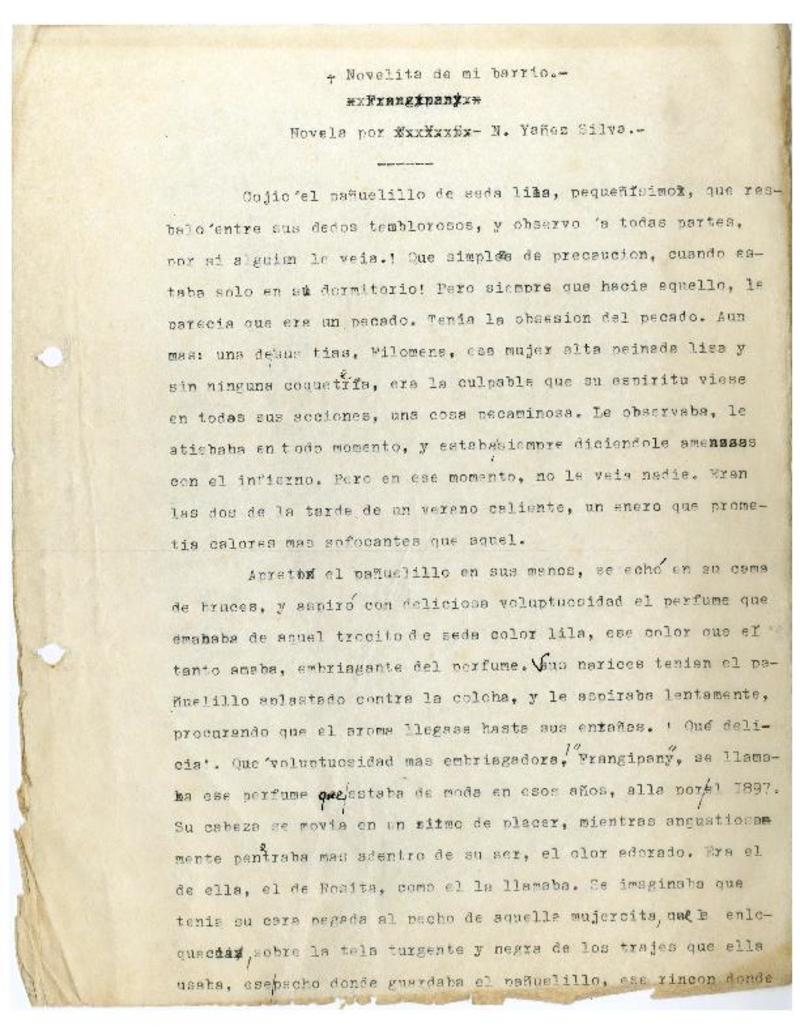 Novelita de mi barrio [manuscrito] Nathanael Yáñez Silva.