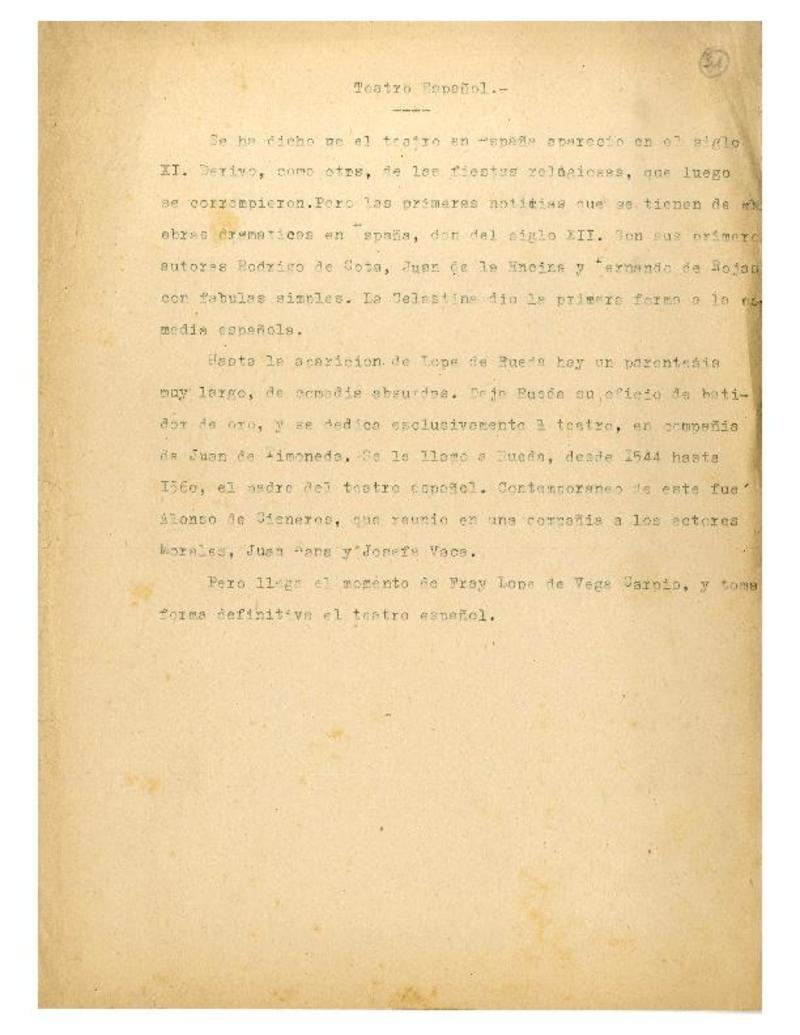 Teatro español [manuscrito] Nathanael Yáñez Silva.