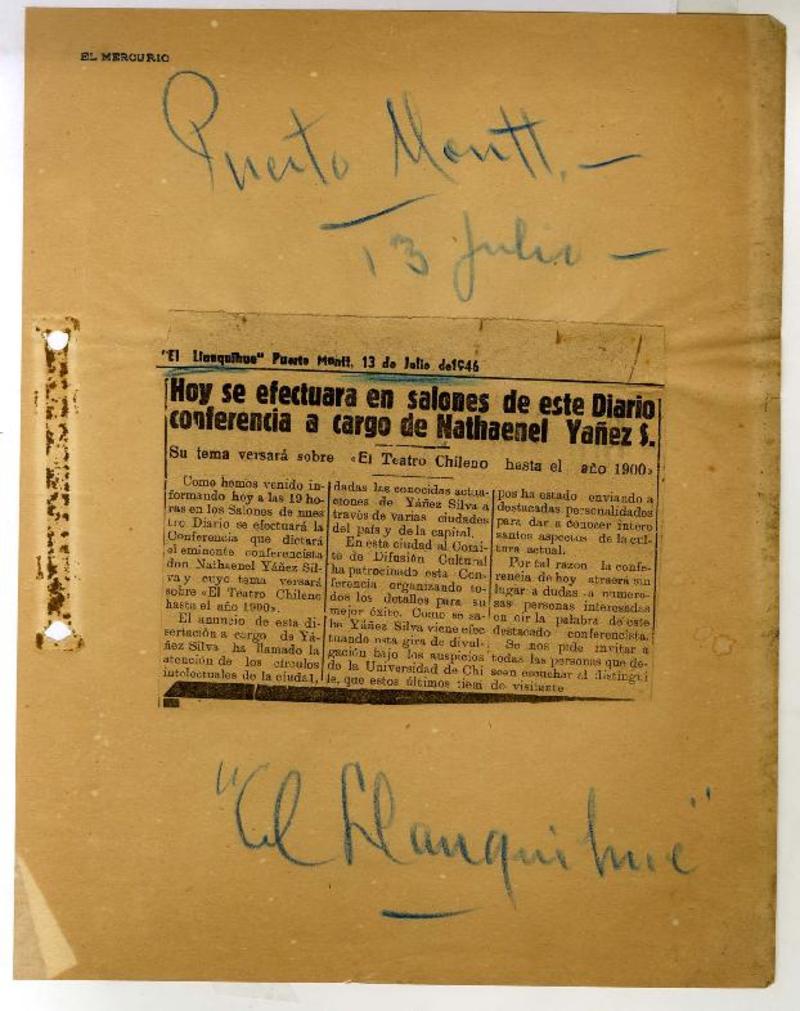 Artistas chilenos y extranjeros en nuestro teatro [manuscrito] Nathanael Yáñez Silva.