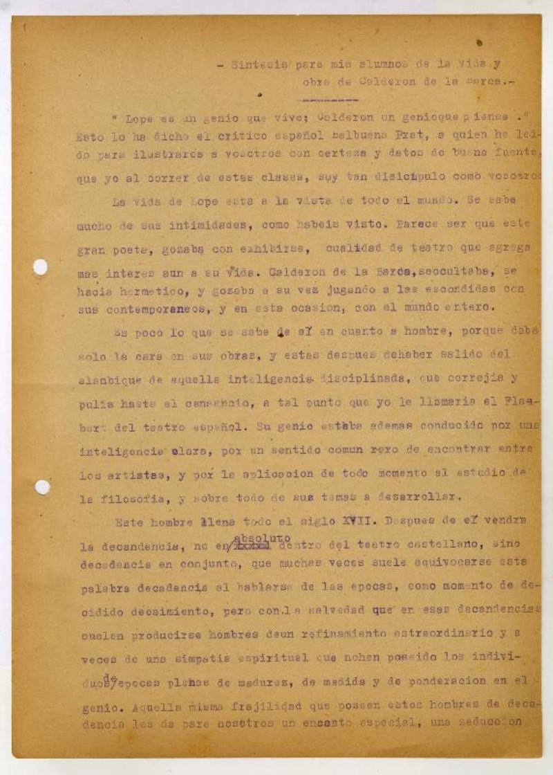 Síntesis de la vida y obra de Calderón de la Barca [manuscrito] Nathanael Yáñez Silva.