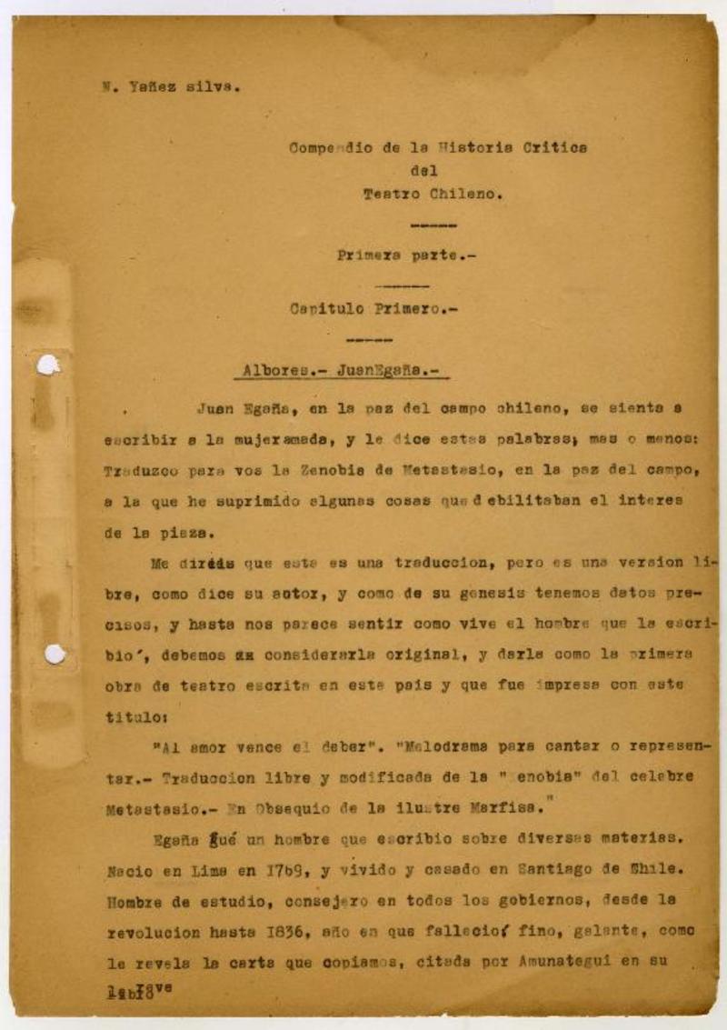 [Historia del teatro en Chile] [manuscrito] Nathanael Yáñez Silva.