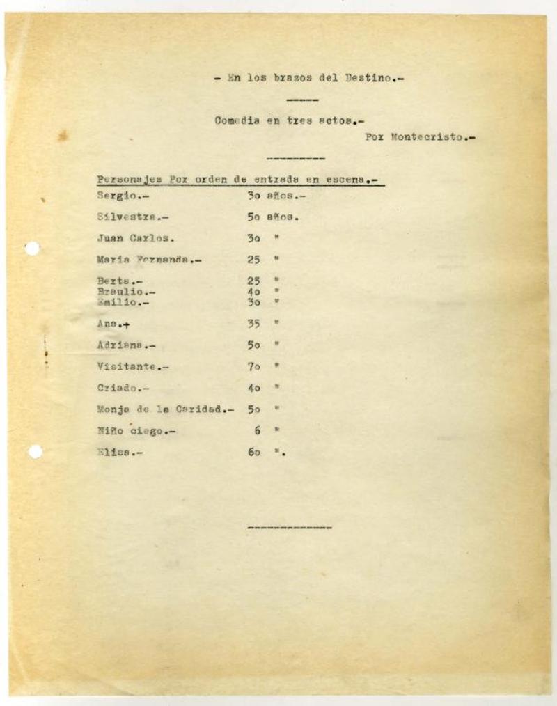 En los brazos del destino [manuscrito] Nathanael Yáñez Silva.