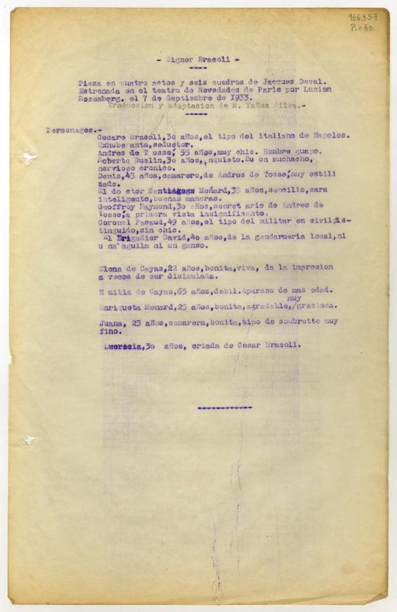 Signor Bracoli [manuscrito] Nathanael Yáñez Silva.