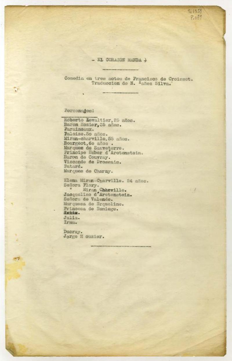 Actores - Manuscritos chilenos - Actrices - Teatro - Teatro chileno