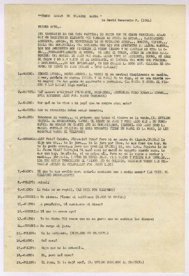 Tengo ganas de dejarme barba [manuscrito] David Benavente.