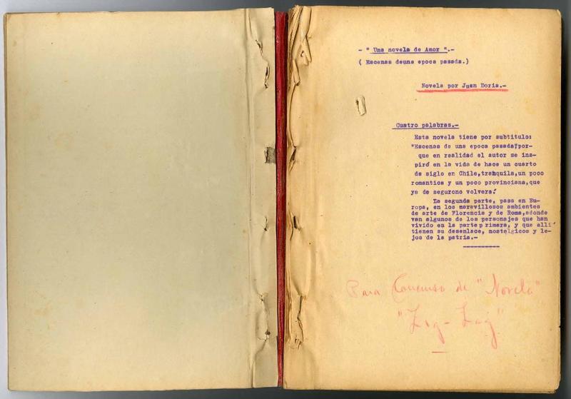 Una novela de amor [manuscrito] Nathanael Yáñez Silva