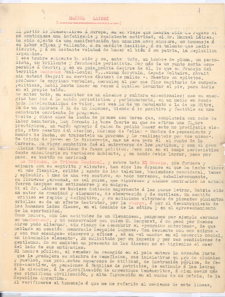 Manuel Lainez [manuscrito] Rubén Darío; transcripción.