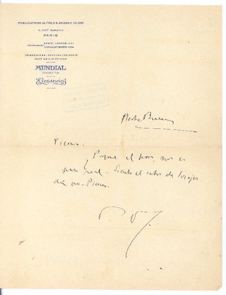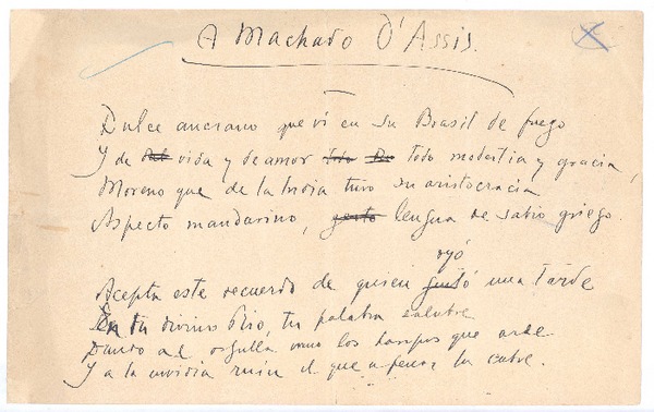 A Machado D'Assis [manuscrito] Rubén Darío.