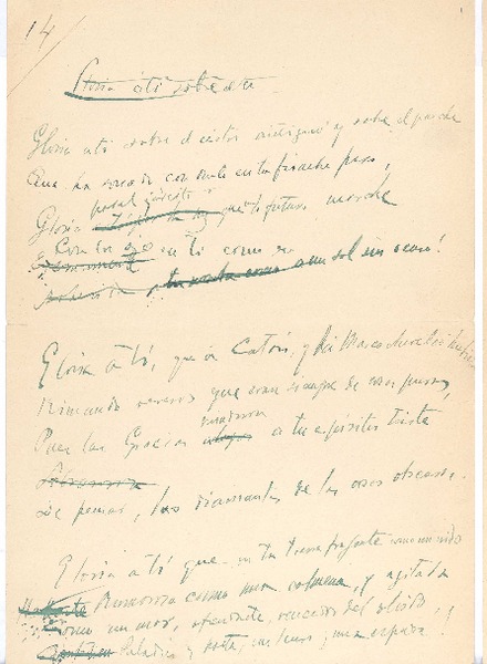 [Gloria a ti sobre el astro...] [manuscrito] Rubén Darío.