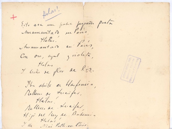 Helas [manuscrito] Rubén Darío.