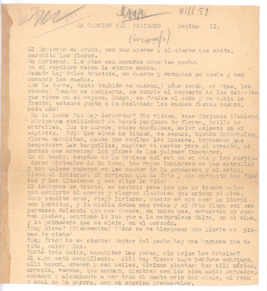 La canción del invierno [manuscrito] Rubén Darío.