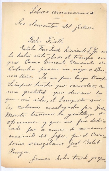 Letras americanas Los elementos del futuro. [manuscrito] Rubén Darío.