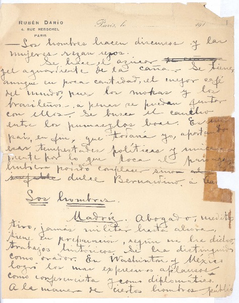[Los hombres hacen discursos] [manuscrito] Rubén Darío.