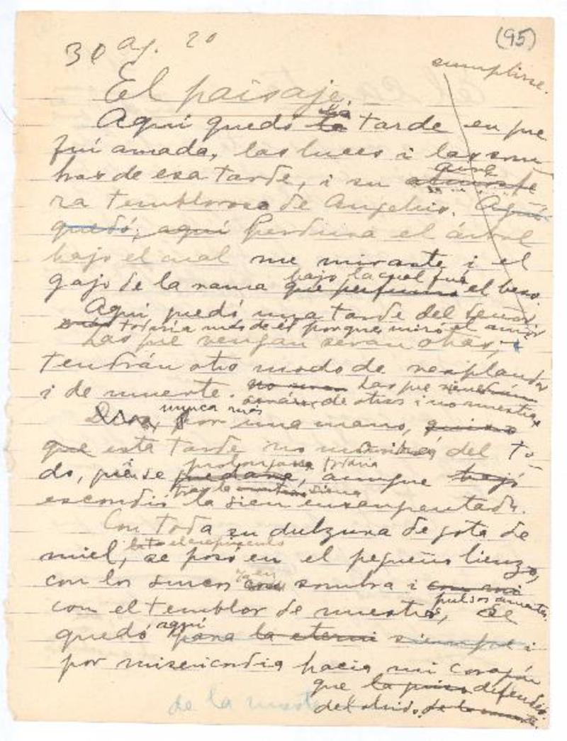 El paisaje ; El canto [manuscrito] Gabriela Mistral.