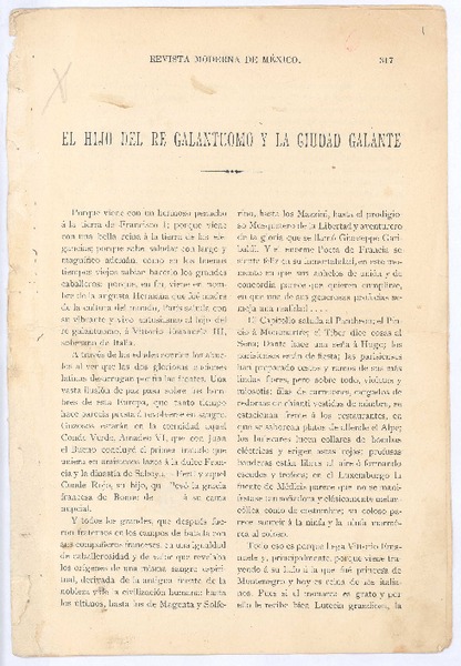 El hijo del re galantuomo y la ciudad galante [manuscrito] Rubén Darío.
