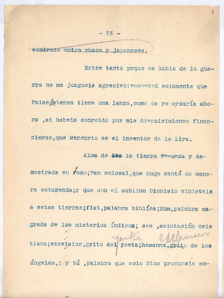 [..admirado entre rusos y japoneses.] [manuscrito] Rubén Darío.