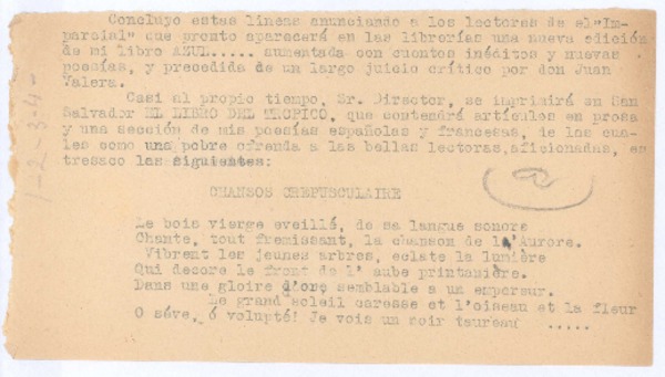 [Concluyo estas líneas...] [manuscrito] Rubén Darío.