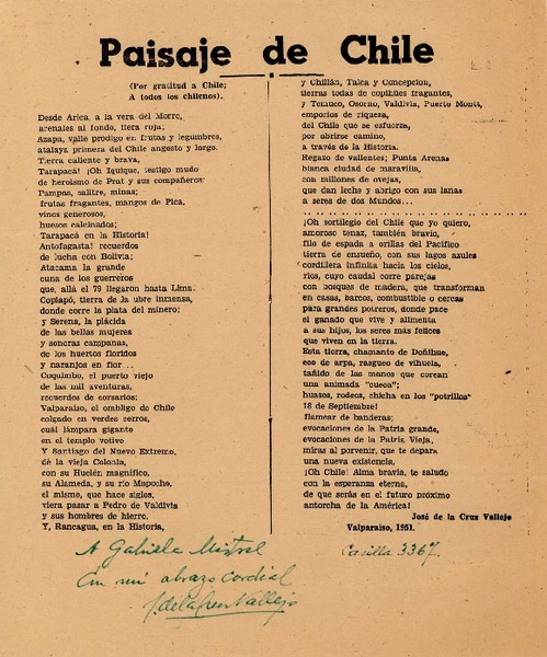 [Poema] Paisaje de Chile [manuscrito] José de la Cruz.