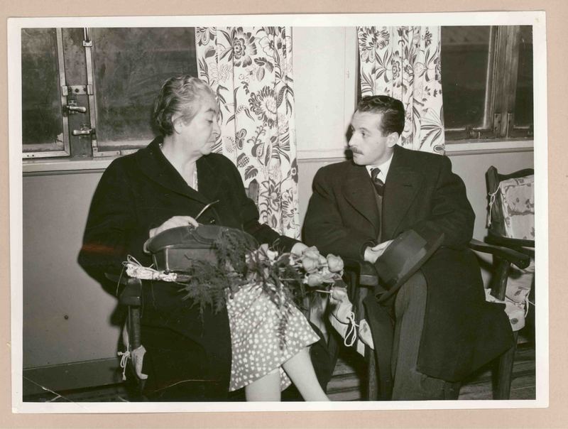 [Gabriela Mistral y Doris Dana llegando a Italia] [fotografía].