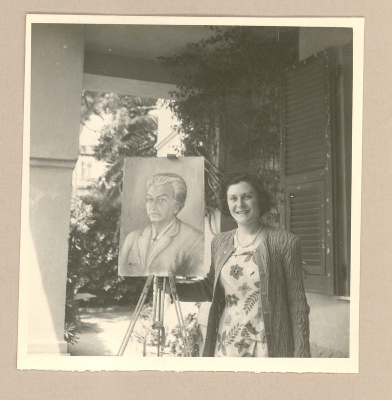 [Gilda Péndola junto a un retrato de Gabriela Mistral] [fotografía].