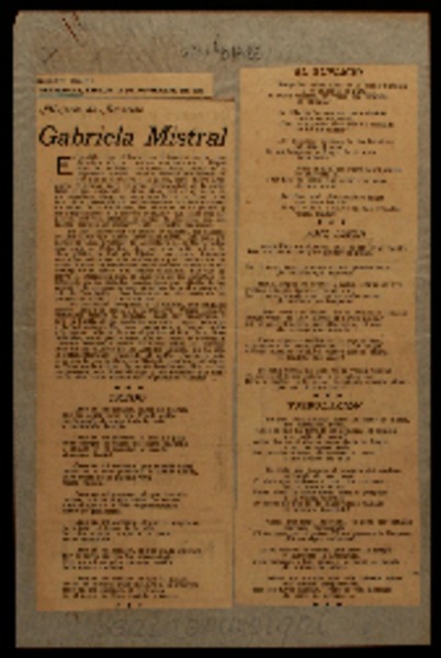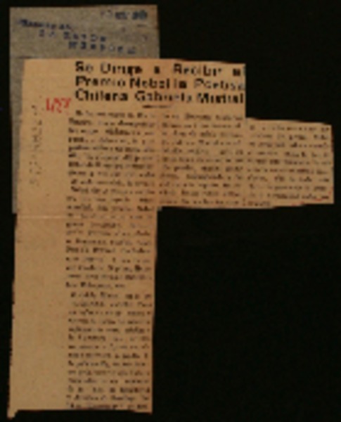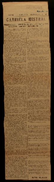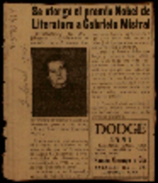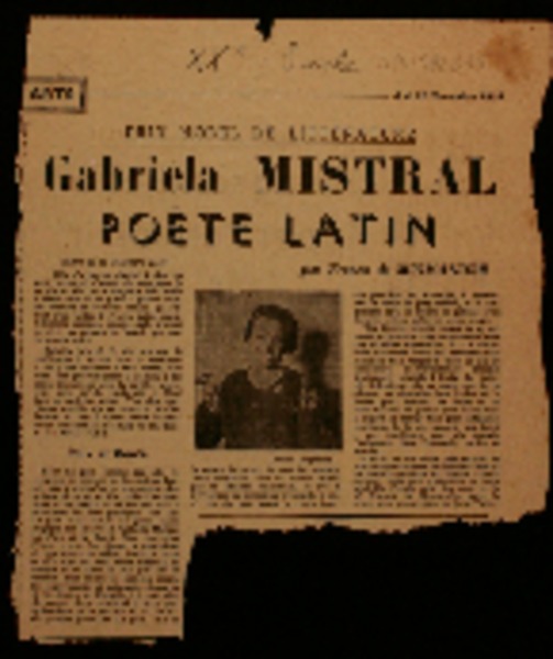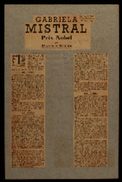 Premio Nobel a Gabriela Mistral [artículo] Mocho Fray.
