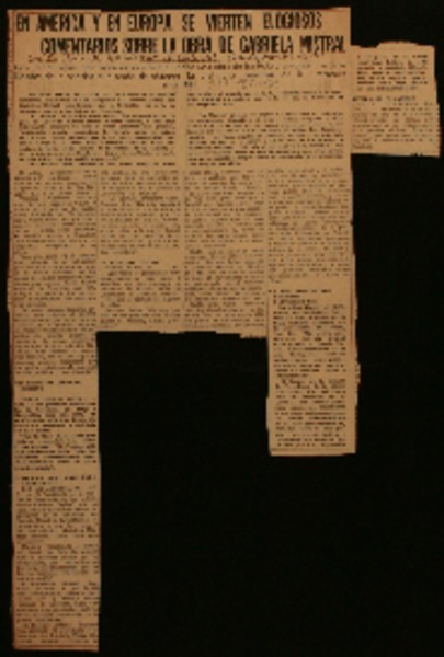 En América y en Europa se vierten elogiosos comentarios sobre la obra de Gabriela Mistral los comentarios coinciden en que se ha hecho una obra de justicia y ensalzan las cualidades de la poetisa que acaba de obtener la distinción máxima de la literatura mundial. [artículo] :