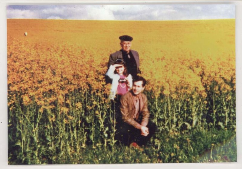 Gonzalo Rojas junto a su hijo Rodrigo Tomás y su nieta] [fotografía].