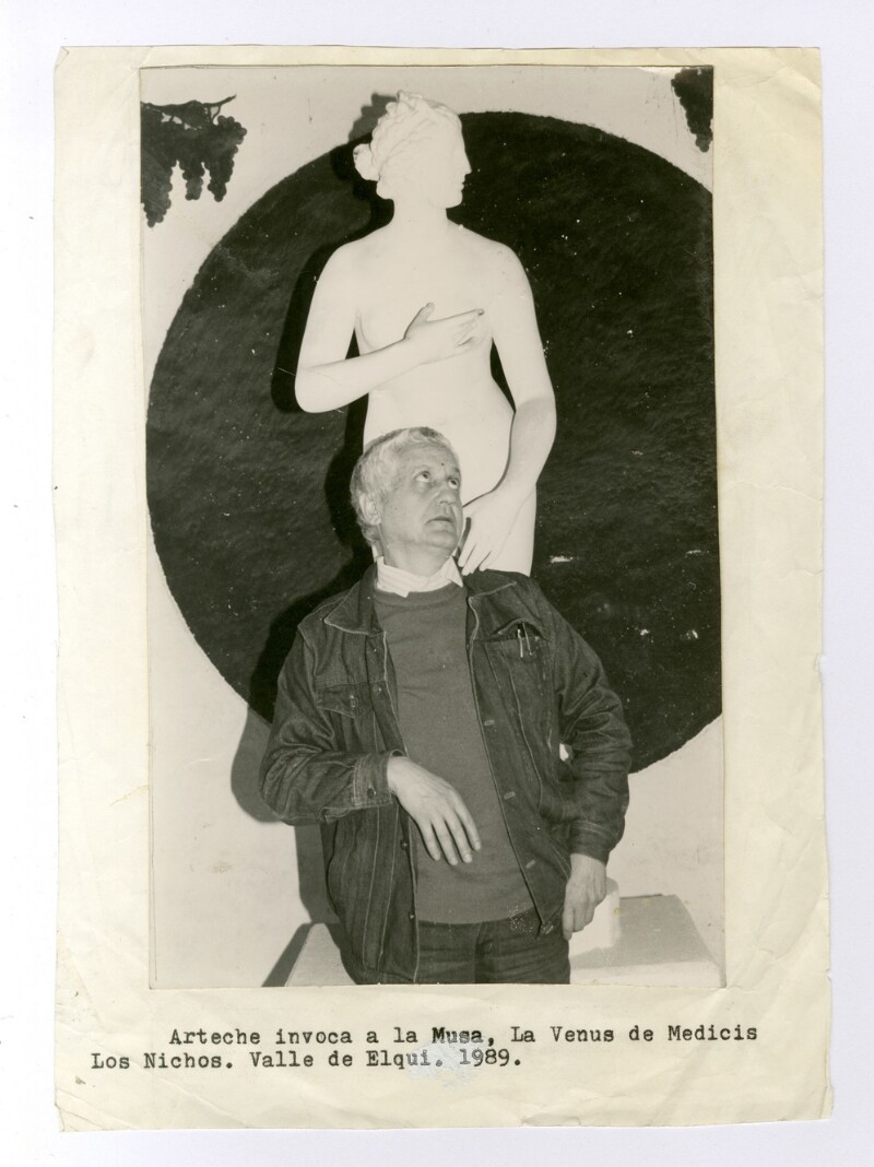 Miguel Arteche junto a la Venus de Medicis [fotografía] Waldo Yáñez.