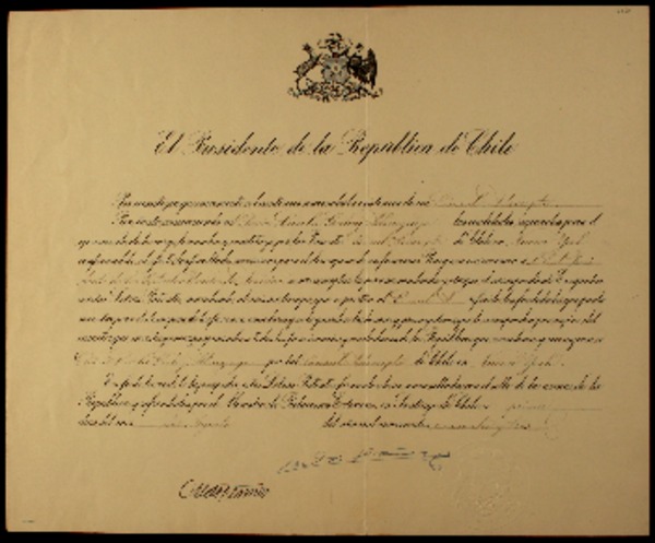 Manuscritos chilenos - Presidentes - Diplomáticos - Fernández Fernández, Joaquín - Ríos, Juan Antonio - Documentos consulares - Cónsules - Reyes, Salvador