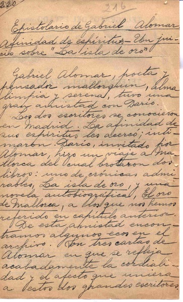 Palma, España [a] Rubén Darío, Carta, 1907 agosto 21, [manuscrito] Gabriel Alomar.