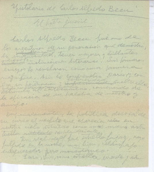 Epistolario de Carlos Alfredo Becu El poeta juvenil. [manuscrito] Alberto Ghiraldo.