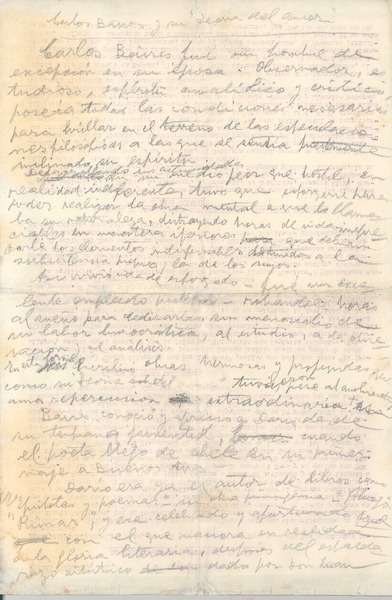 Carlos Baires y su Teoría del amor [manuscrito] Alberto Ghiraldo.
