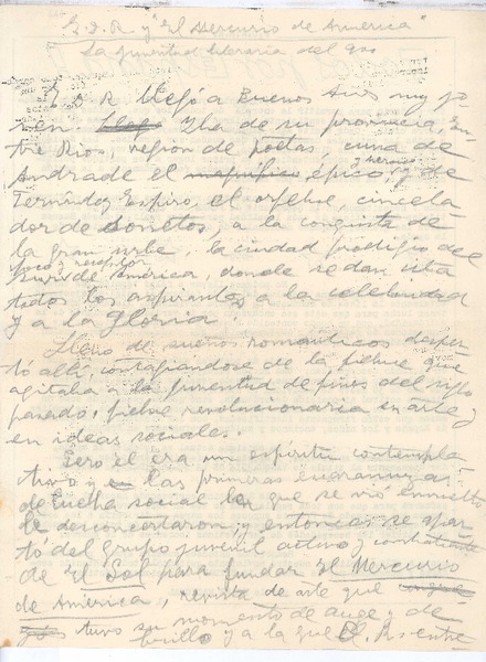 Eugenio Díaz Romero y El Mercurio de América La juventud literaria del 900. [manuscrito] Alberto Ghiraldo.