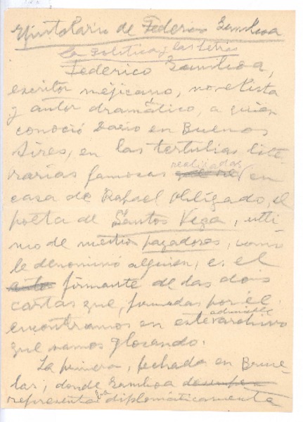 Epistolario de Federico Gamboa La política y las letras. [manuscrito] Alberto Ghiraldo.
