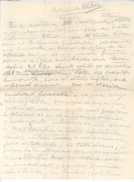 Eduardo Wilde [manuscrito] Alberto Ghiraldo.