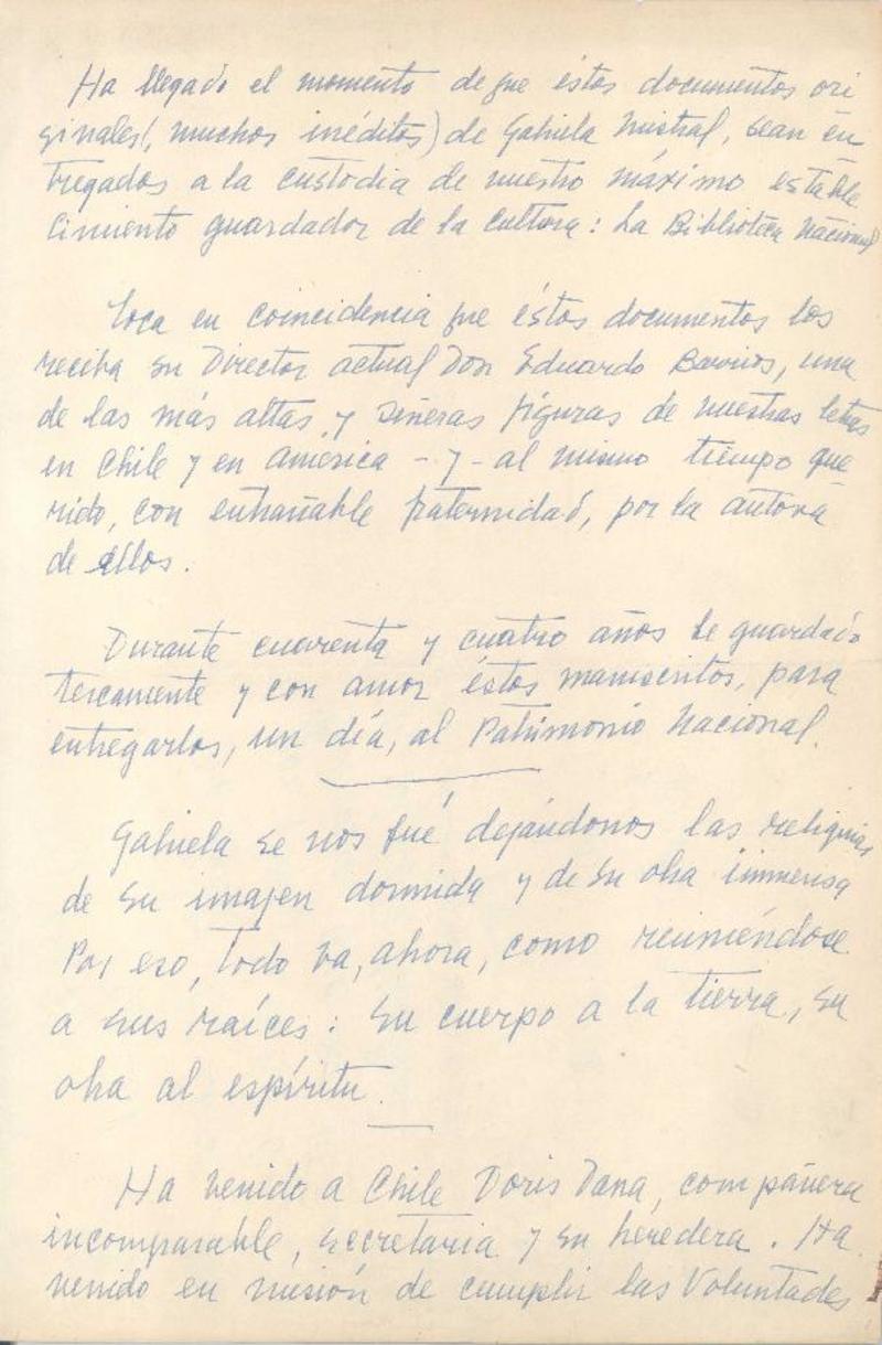 Manuscritos chilenos - Discursos - Mistral, Gabriela