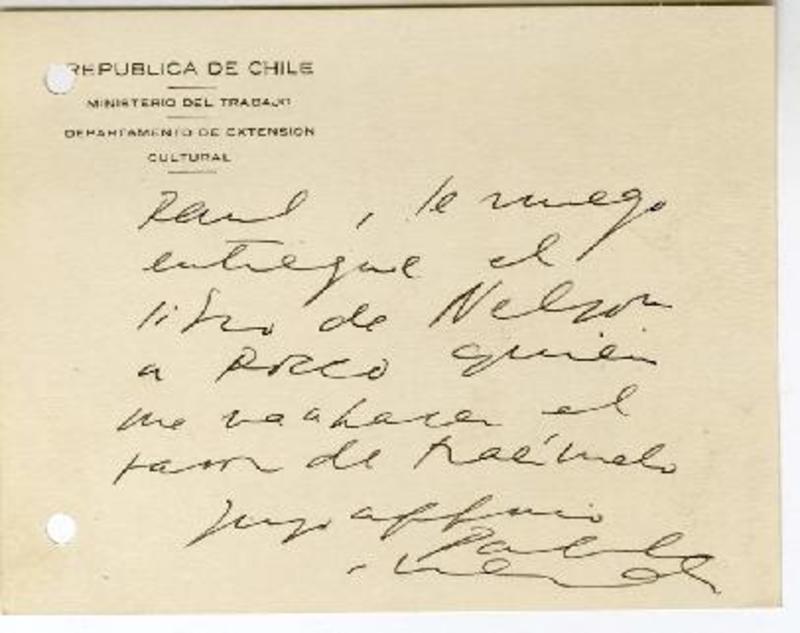 [Carta] 1934 [a] Gabriela Mistral [manuscrito] Pablo Neruda.
