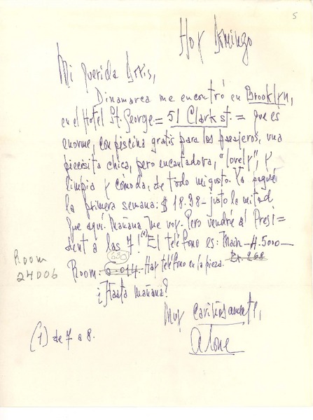 [Carta] 1953 ene. 1, [Santiago, Chile] [a] [Gabriela Mistral], [La Habana?, Cuba] [manuscrito] Alone.
