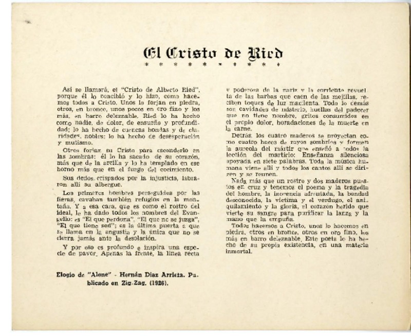 El cristo de Ried [manuscrito] Hernán Díaz Arrieta.