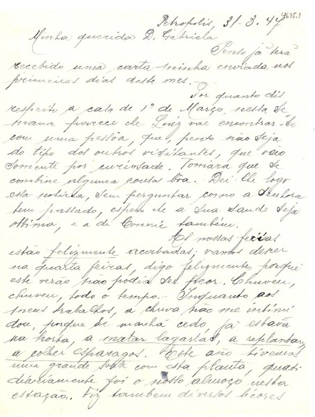 [Carta] 1947 mar. 31, Petrópolis [a] Gabriela Mistral [manuscrito] María Fossati.