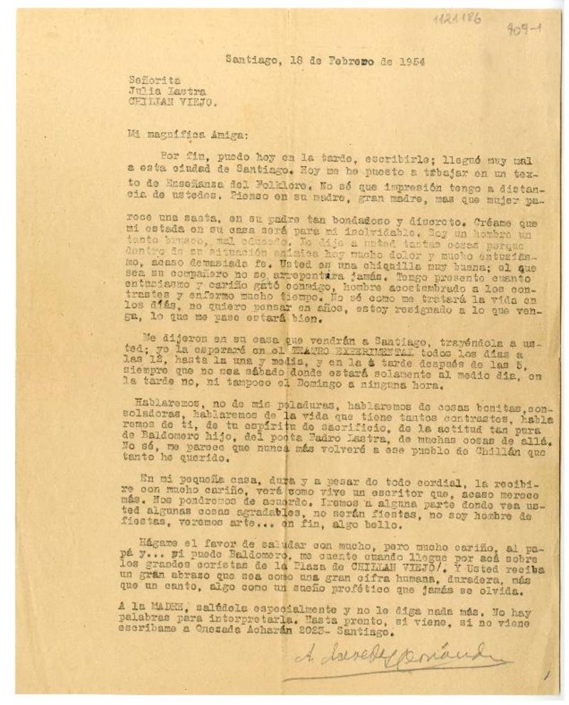 [Carta 1950?], Santiago, Chile [a] Gonzalo Drago, San Fernando, Chile [manuscrito] Antonio Acevedo Hernández.