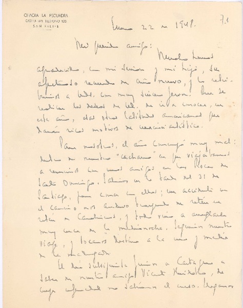 [Carta] 1948 ene. 22, San Felipe, Chile [a] Pedro Olmos [manuscrito] Alfonso Bulnes.