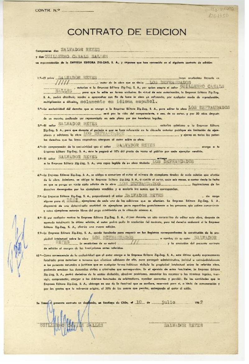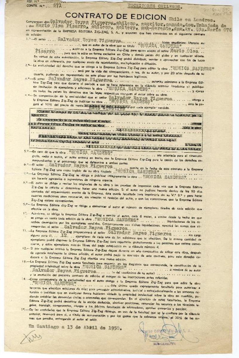 Correspondencia - Manuscritos chilenos - Reyes, Salvador - Empresa Editora Zig-Zag (Chile) - Autores chilenos
