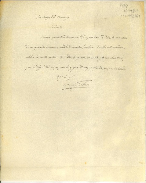 [Carta] 1947? mar. 29 [a] [Gabriela Mistral] [manuscrito] Luis Felhoem.