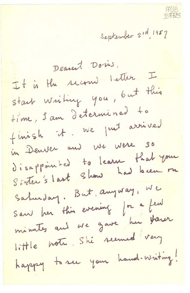 [Carta] 1957 Sept. 2, New York [a] Dearest Doris [manuscrito] Marie Lise [Gazarian].