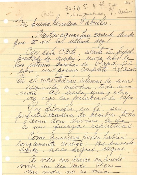 Mistral, Gabriela - Brenes de Hilarov, Fresia - Manuscritos costarricences - Correspondencia