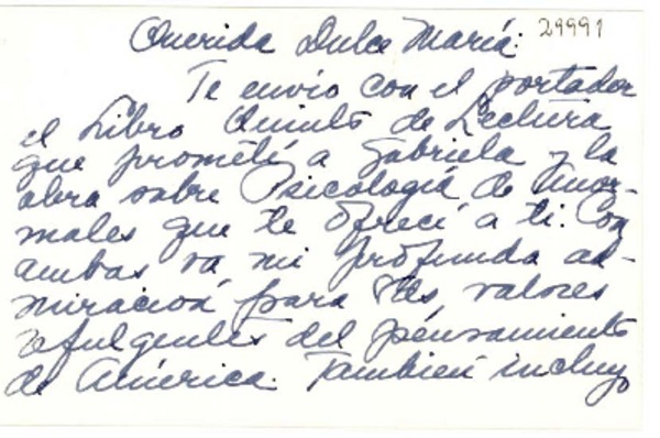 [Carta] [a] Dulce María Loynaz [manuscrito] Gabriela Mistral.